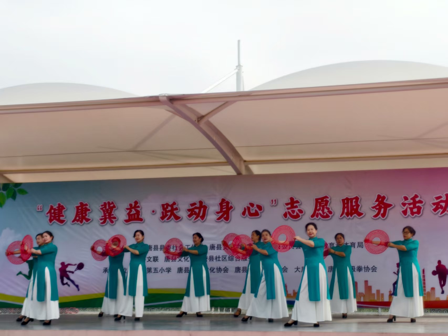 8月26日,由唐县县委社会工作部、文明办、团县委、教育和体育局、文联、文化馆、社区综合服务中心、迎宾北大街社区居委会联合旗袍文化协会、武术联盟协会、大唐鼓社、太极拳协会等多家单位共同举办的“健康冀益·跃动身心”志愿服务活动在第五小学操场顺利举行,为群众带来了一场集文化展示与运动体验于一体的“健康盛宴”。