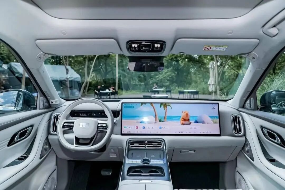 除了动力方面,在底盘和内部配置上,除了三款低配车型外,其他版本都采用配有“魔毯"智能悬挂系统,可以实时调节悬挂的软硬程度,从而提高舒适性,顶配车型还可以选装双腔空气悬挂。在其他配置上,银河M9全系标配20寸轮毂,L2级辅助驾驶,前排座椅的通风加热,中高配车型上还配有千里浩瀚H5高阶智驾辅助系统,同时一二排座椅标配了座椅的通风加热按摩记忆。