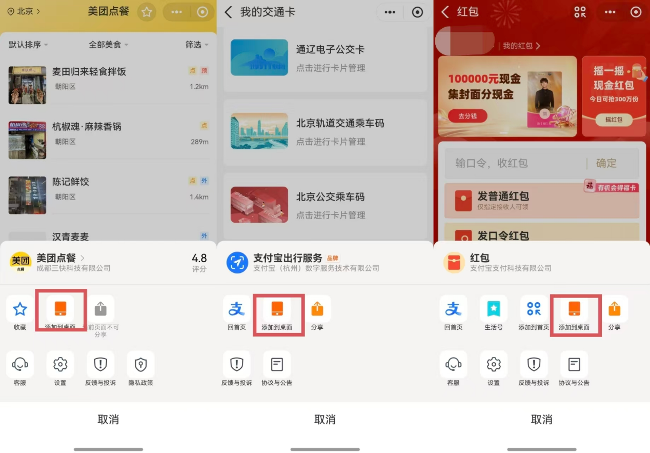 除了集福,鸿蒙版支付宝的最新版本还上线了一堆实用功能。常用小程序可以直接添加到桌面,我把美团点餐小程序添加到桌面,用的时候不用再打开App翻半天。出行服务、红包这些春节刚需功能也都齐活了,各种事情一个App搞定。鸿蒙6用户最多能添加10个小程序到桌面,推荐你也试试!