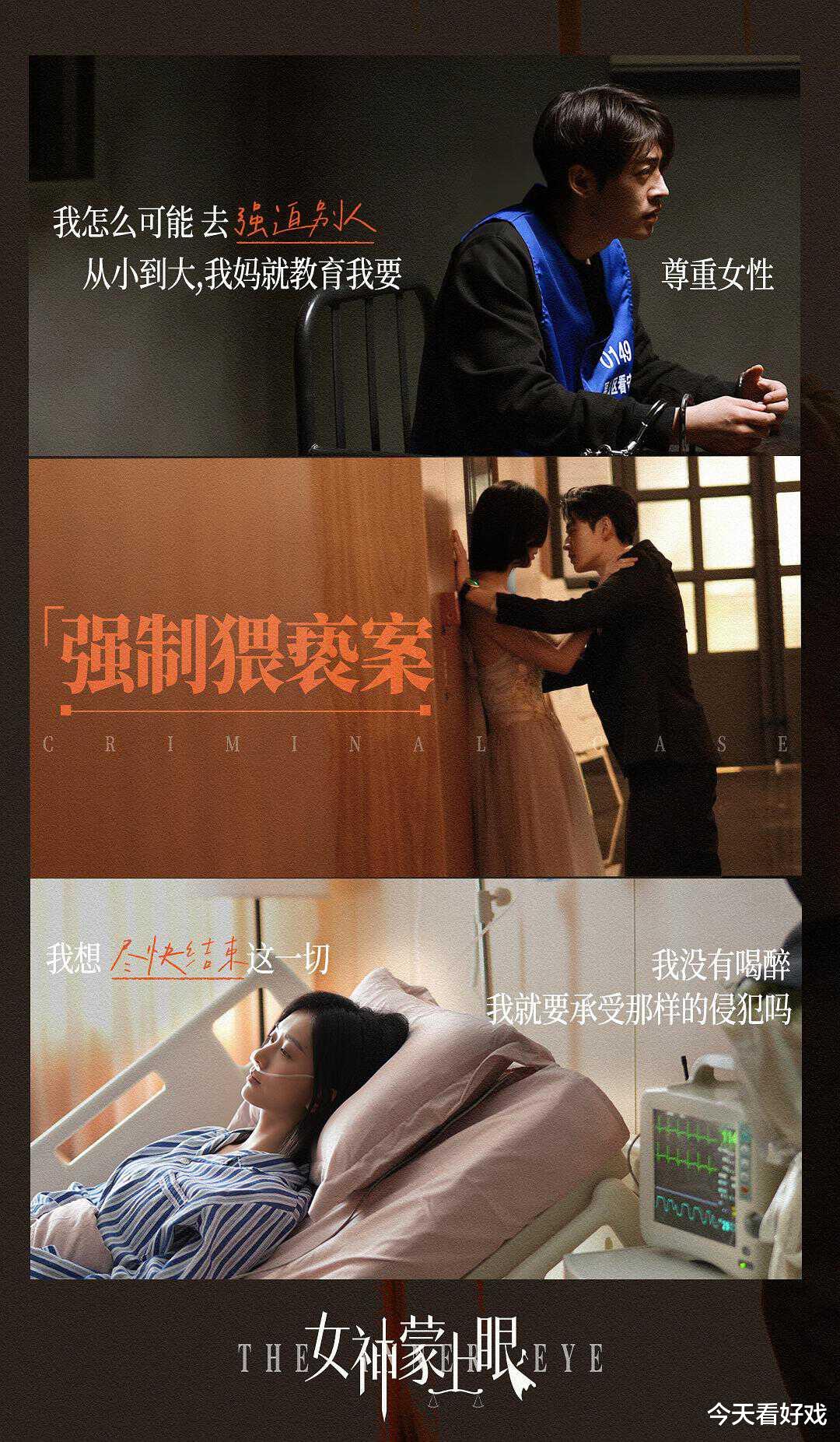 《女神蒙上眼》应该属于律政剧吧。但这部剧最大的问题是,案件里的人的故事比男女主的故事精彩。