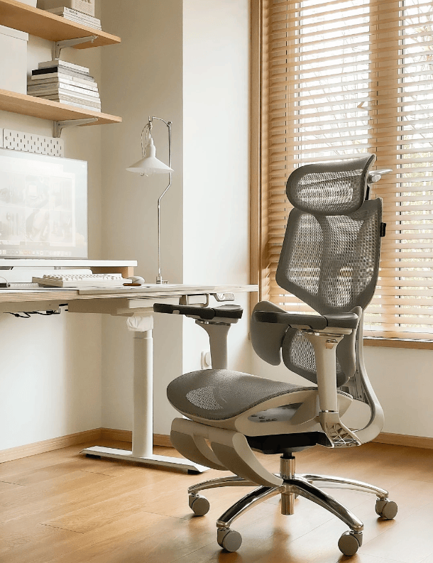 这款椅子是一款主打“精准分区支撑”的人体工学椅,坐上去就能感受到腰、颈、手臂都有恰到好处的支撑力。它的核心在于独特的三区浮翼腰托,可以根据不同坐姿自动贴合腰部曲线,并支持多角度和高度调节,让腰部被“包裹”住一样,长时间办公也不会累。颈枕采用4维双轴结构,不仅能上下、前后调节,还能旋转角度,无论正坐打字还是后仰放松,颈部都能找到舒服的支点。扶手部分也很灵活,360°机械臂式设计能精确调到与桌面平齐,打字、写字都更轻松。坐垫用的是Air呼吸网布,透气又有弹性,夏天坐久也不闷热、不塌陷。需要注意的是,它的腰托角度锁定在带来稳固支撑的同时,也会稍微限制姿势的自由变换,更适合固定坐姿办公的人群。