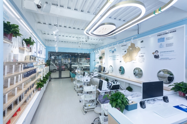 丸碧实体店拥有肌肤智能检测“黑科技”,顾客通过先进科学的智能皮肤检测仪,不仅能将暴露在皮肤表面的问题一扫无遗,还能够通过定量分析将隐藏在皮肤基底层的问题也直观反映出来。同时将科学检测仪器与个性化产品相结合,推出多种护肤套餐,满足肌肤的检测、清洁、补水、修护等一系列个性化需求,为客户提供一对一、定制化专属护肤方案。对于实体进行整店输出扶持,从装修物料到美容仪器,以及各种小物品,均由公司提供,帮你一步到位。
