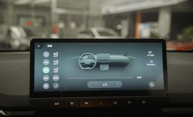 新车内饰简约,中央设12.3英寸悬浮屏,支持语音控制、车联网、OTA升级等功能,且屏下配备空调实体按键,此设计值得称赞。