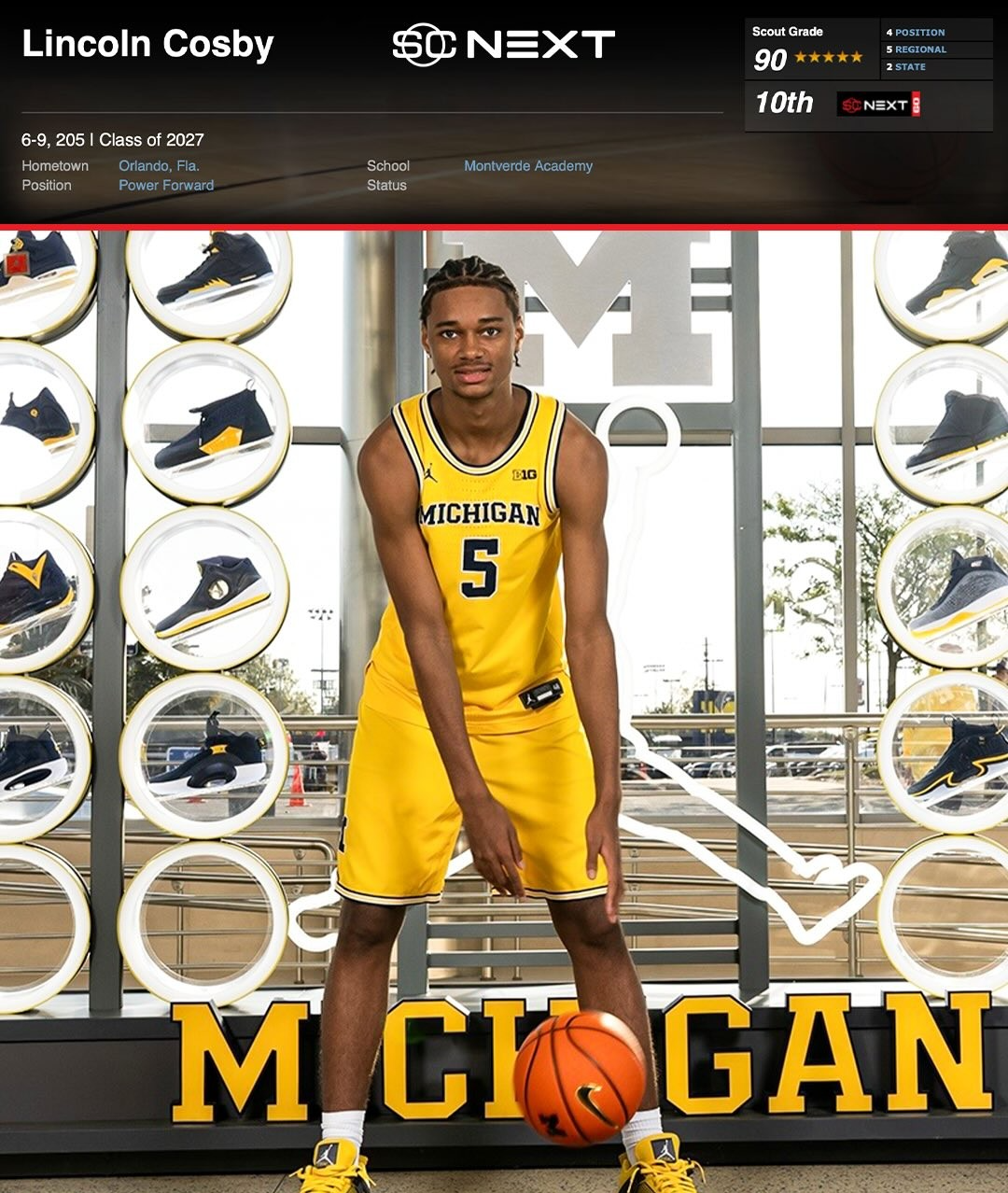 科斯比是密歇根大学这届收到的第五位加盟者,也是SC Next官网前100强的第三位球员,另外还有麦当劳全明星中锋奎因-科斯特洛(Quinn Costello)和四星得分后卫约瑟夫-哈特曼(Joseph Hartman),球队还得到玛拉基-布朗(Malachi Brown)和丹麦中锋马库斯-莫勒(Marcus Moller)。