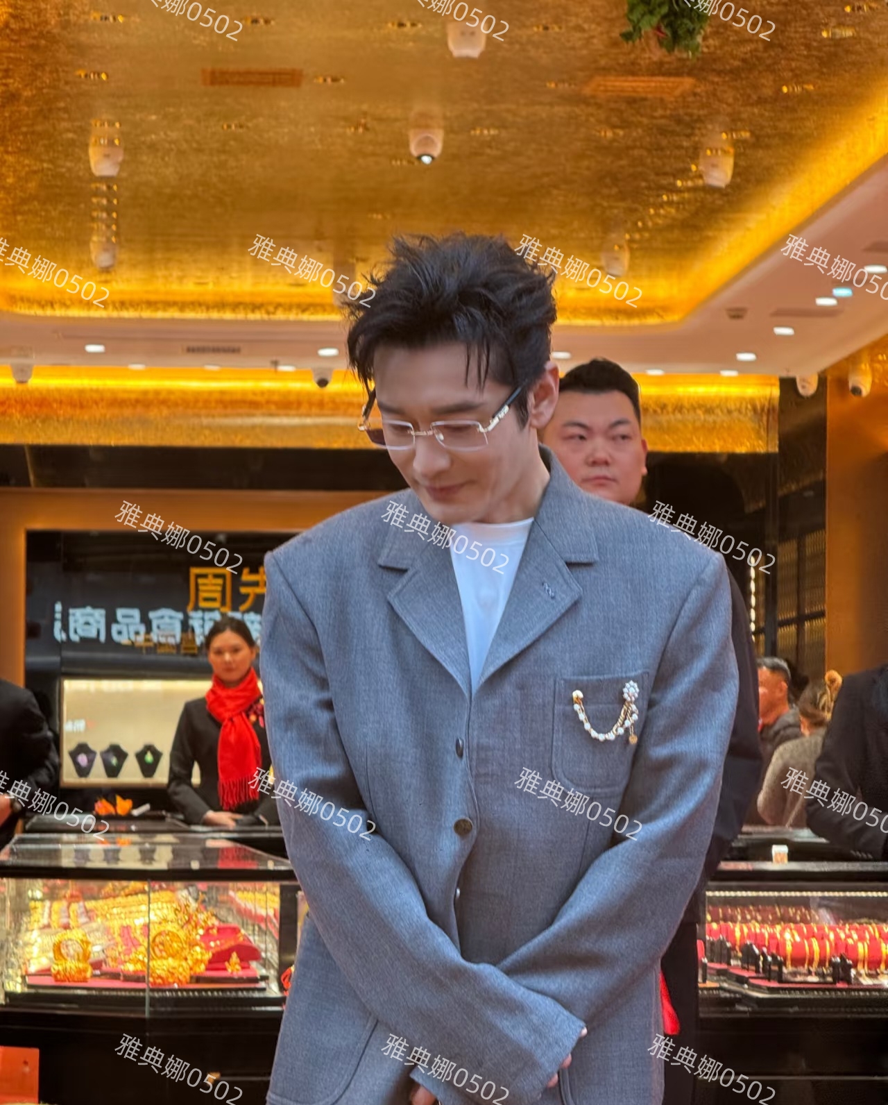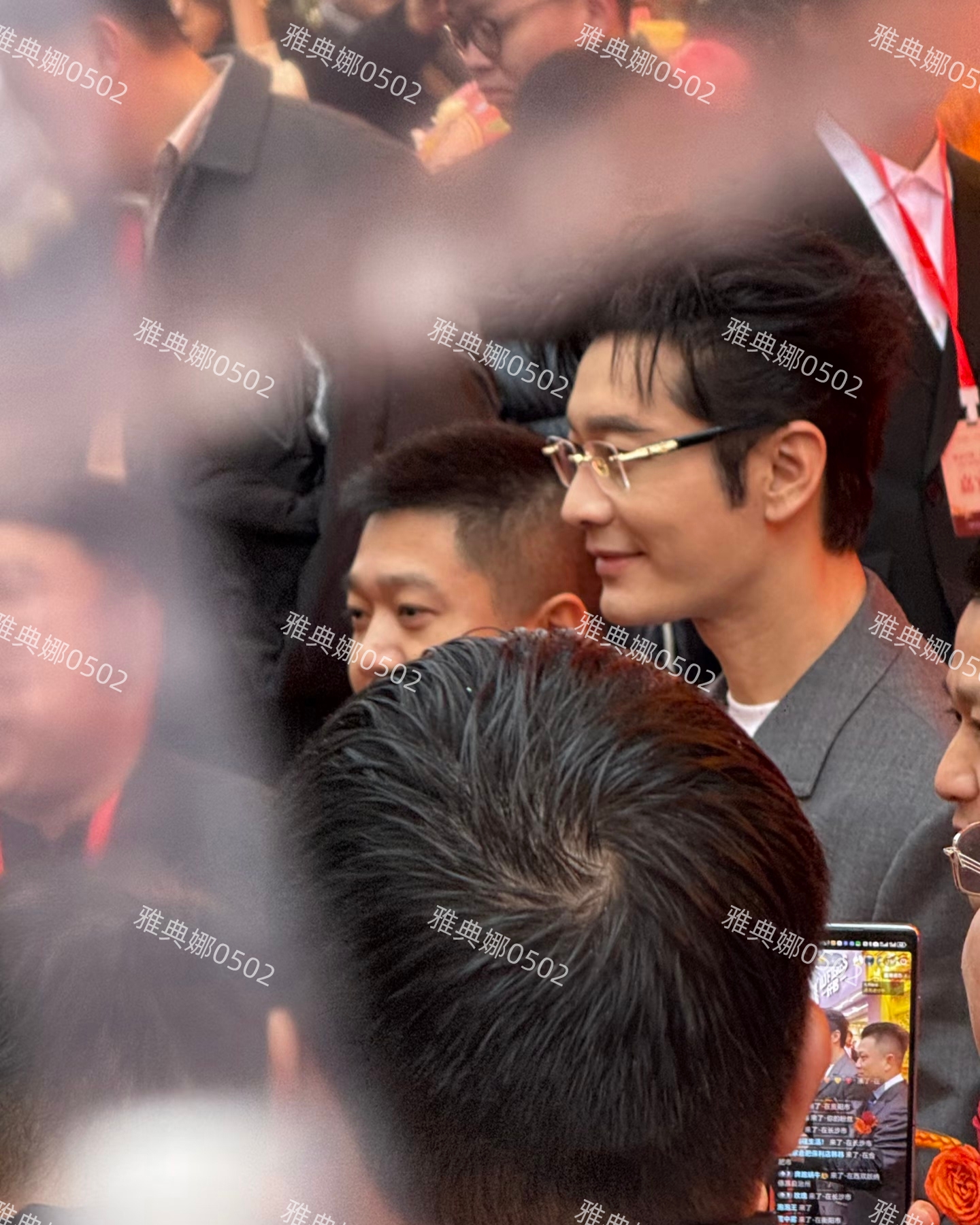 黄晓明一现身就受到了热烈的追捧和欢迎,他今天的造型很好看,一身灰色的西装,配上金边儿方框眼镜,气质斯文儒雅,很有商业精英霸道总裁范儿。