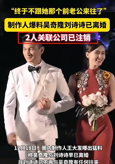 《王大发爆料吴奇隆刘诗诗已离婚,两人关联公司已注销,盘点两人商业版图》潇湘晨报2024-12-18发布