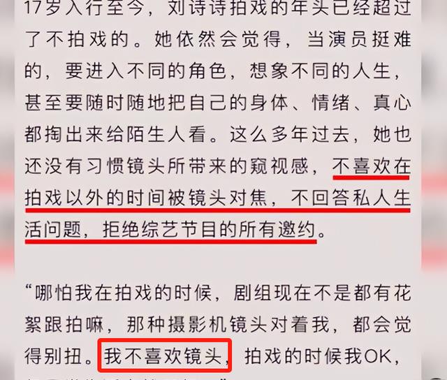 他们的作法,也很符合自身的性格,刘诗诗曾在采访中回答过,自己不会回答私人生活问题,她也不喜欢日常生活中面对镜头。