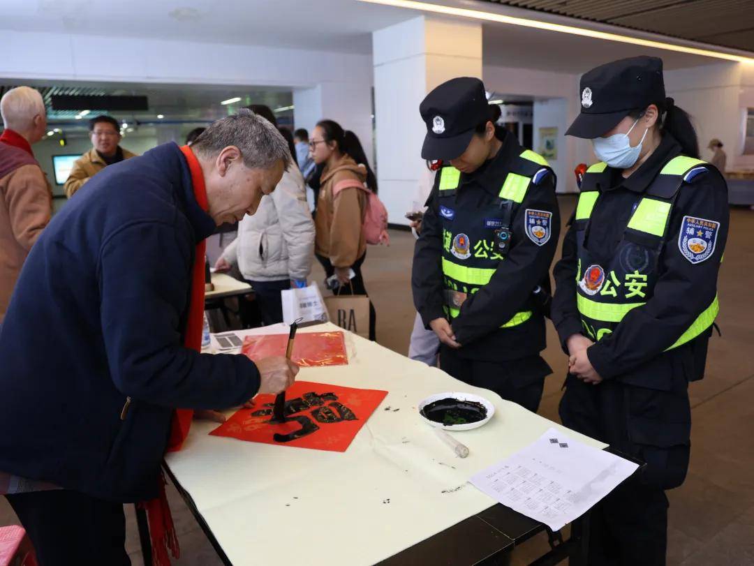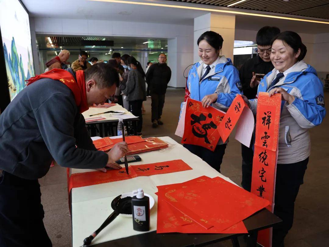 随着新春佳节的临近,由昆明市总工会主办的“送万福进万家”书法公益志愿服务活动在东风广场地铁站圆满收官。2月12日,东风广场地铁站内红幅高挂,墨香扑鼻,吸引了众多旅客驻足观看。