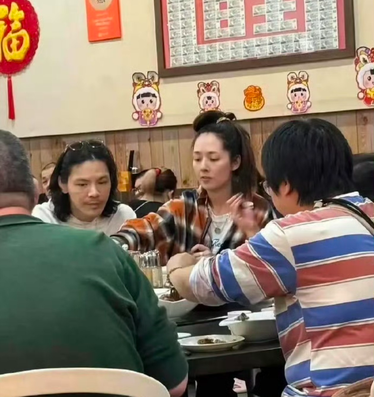 曾经就被拍到过跟老公一起在外吃饭时,扎着奇怪的头发,满满的不修边幅感。