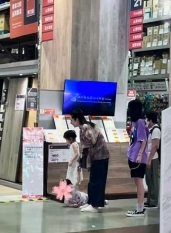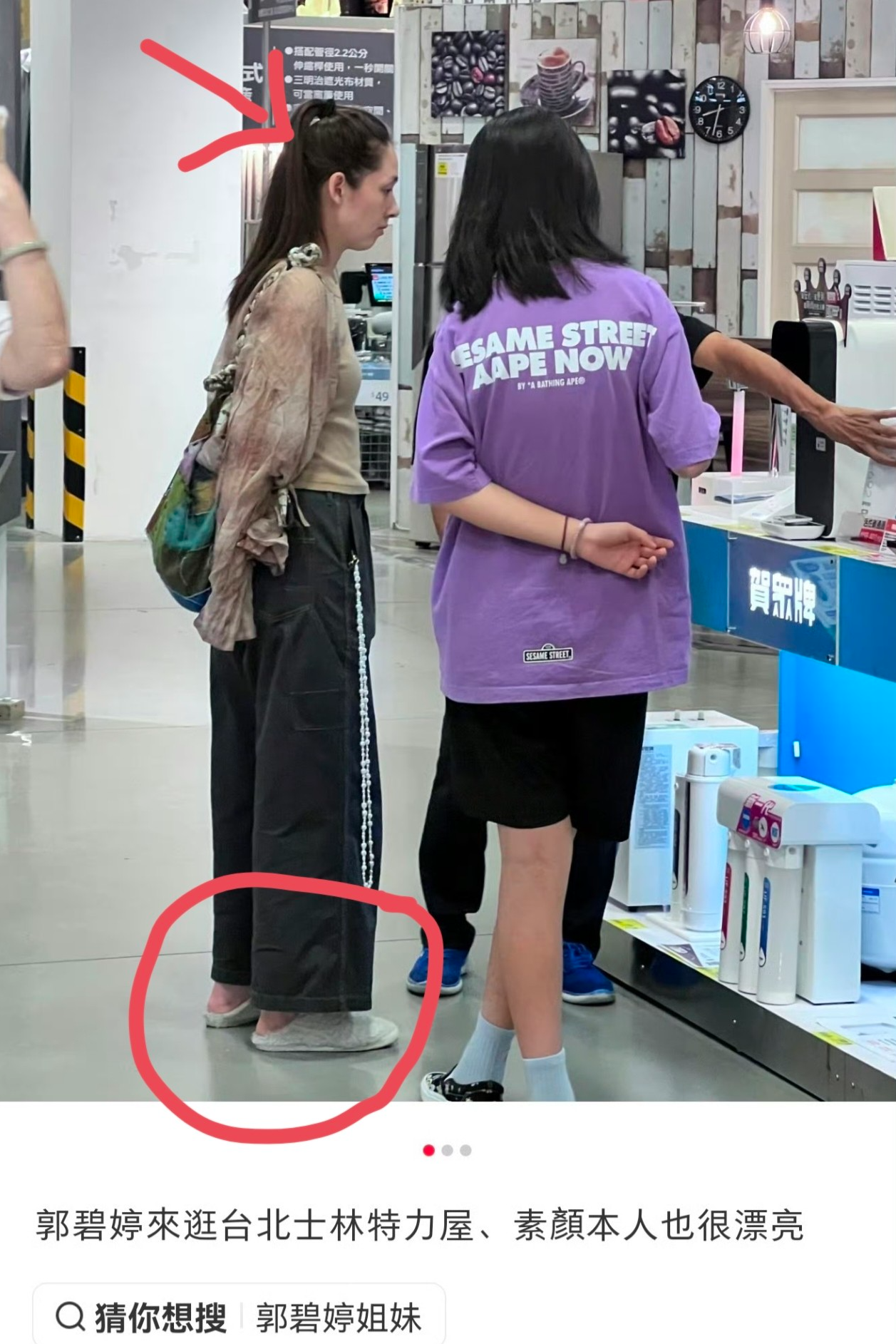 大美女郭碧婷,被偶遇带着两个孩子在台北逛街。