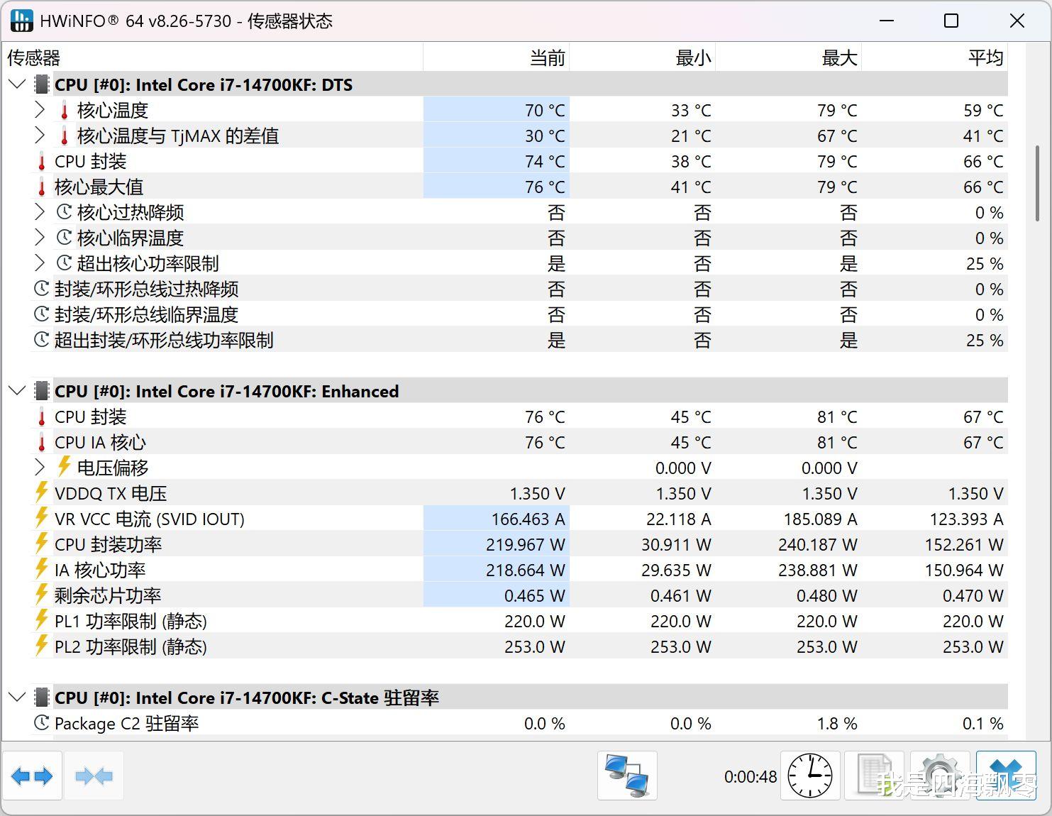 在实际使用过程中,通过水冷散热系统的有效压制,14700KF处理器的温度表现相当出色,其最高温始终稳定在80摄氏度以下,思民这套水冷展现出了卓越的温控能力。