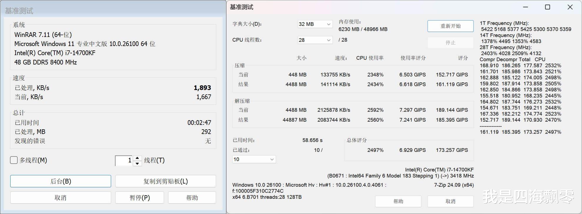 用WinRAR和7-Zip的压缩软件进行基准测试,性能表现如图所示。