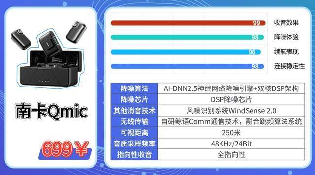 在复杂与远距离场景下,南 卡 QMic 的稳定X同样突出:自研鲸语 Comm 通信技术,搭配抗干扰跳频机制,可视距离 250 米内稳定传输,穿墙能力强,不易断连、不卡顿,无论是大型活动直播、远距离跟拍,还是多人移动拍摄,都能稳定收音。此外还配备三重防爆音专利技术,从结构、算法、波形多维度抑制喷麦与破音,近讲、直播、网课等场景都不用担心突发杂音。