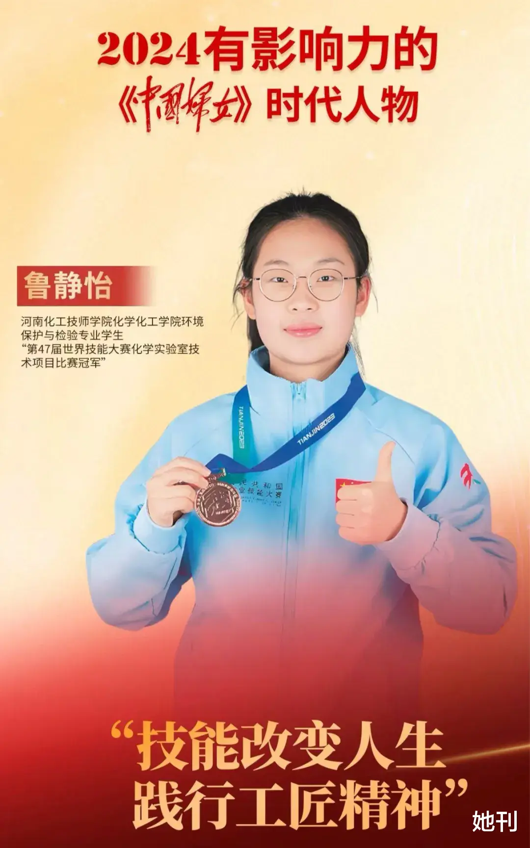 今年,鲁静怡作为亚洲代表,成为“上海世赛全球技能梦想大使”,同时被中国妇女杂志选为2024年有影响力的《中国妇女》时代人物。