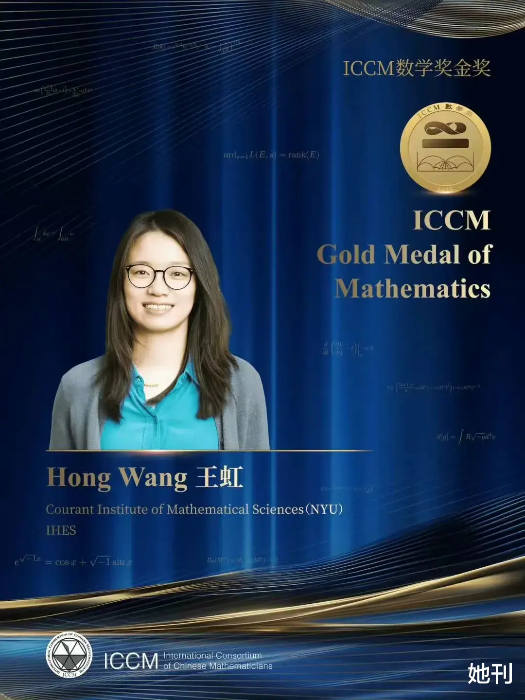 今年10月27日,她获得ICCM数学金奖,隔天,获得塞勒姆奖。