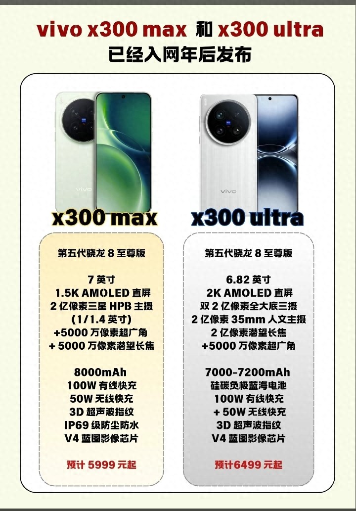 值得一提的是,vivo X300 Max并非今年上半年蓝厂高端阵营的唯一重磅机型。近期网间关于蓝厂将推出超大杯影像旗舰vivo X300 Ultra的爆料也是越来越多。据爆料,影像是该机的最大亮点,有望配备双2亿像素影像方案,进一步强化长焦与主摄的解析力表现,还可能推出北斗卫星通信版,丰富产品竞争力。届时,vivo将正式形成由X300、X300 Pro、X300 Max、X300 Ultra组成的完整旗舰矩阵,覆盖不同用户的差异化需求,全面发力高端旗舰市场,进一步提升自身在高端市场的竞争力。