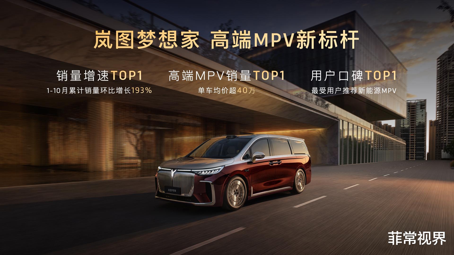山河壮阔远,山高人为峰。发布会上,岚图汽车董事长、总经理卢放回顾了岚图梦想家代代领先的傲人成绩:今年前10个月,岚图梦想家累计销量增速第一,单车均价突破40万元,持续蝉联高端MPV销量冠军,每卖出3台高端MPV,就有1台是岚图梦想家。在权威第三方调研中,岚图梦想家更获评“最受用户推荐新能源MPV”,实现销量与口碑双丰收。