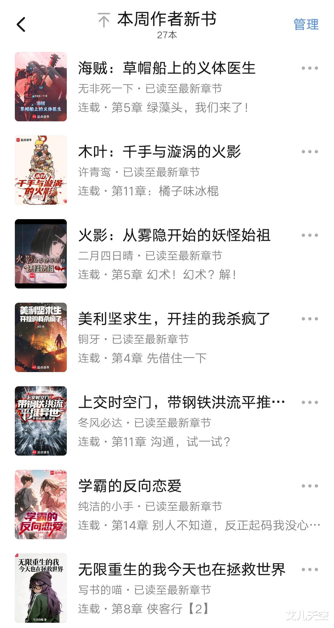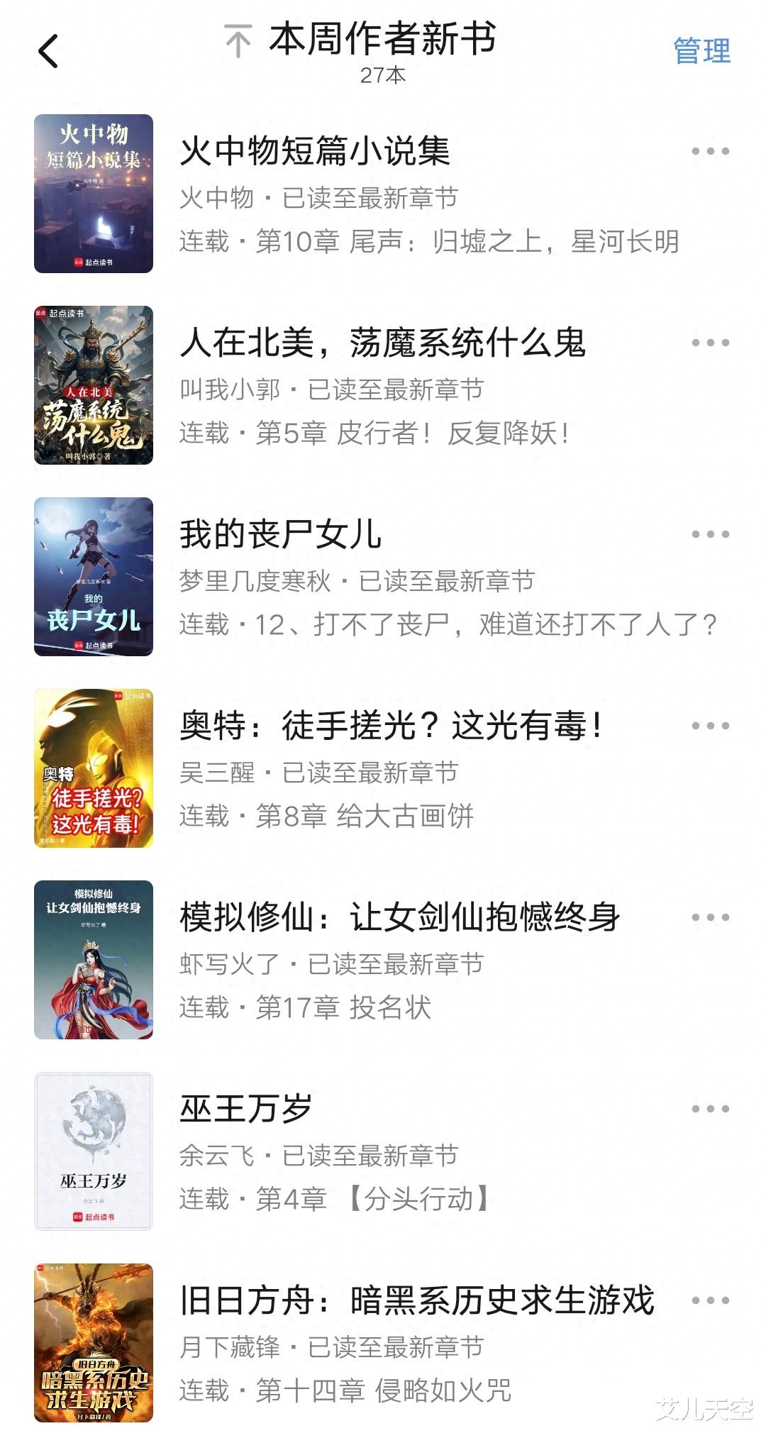 ⑦写书的喵《无限重生的我今天也在拯救世界》,《说好扬帆起航,你当深海支配者?》的作者,去写轻小说了。