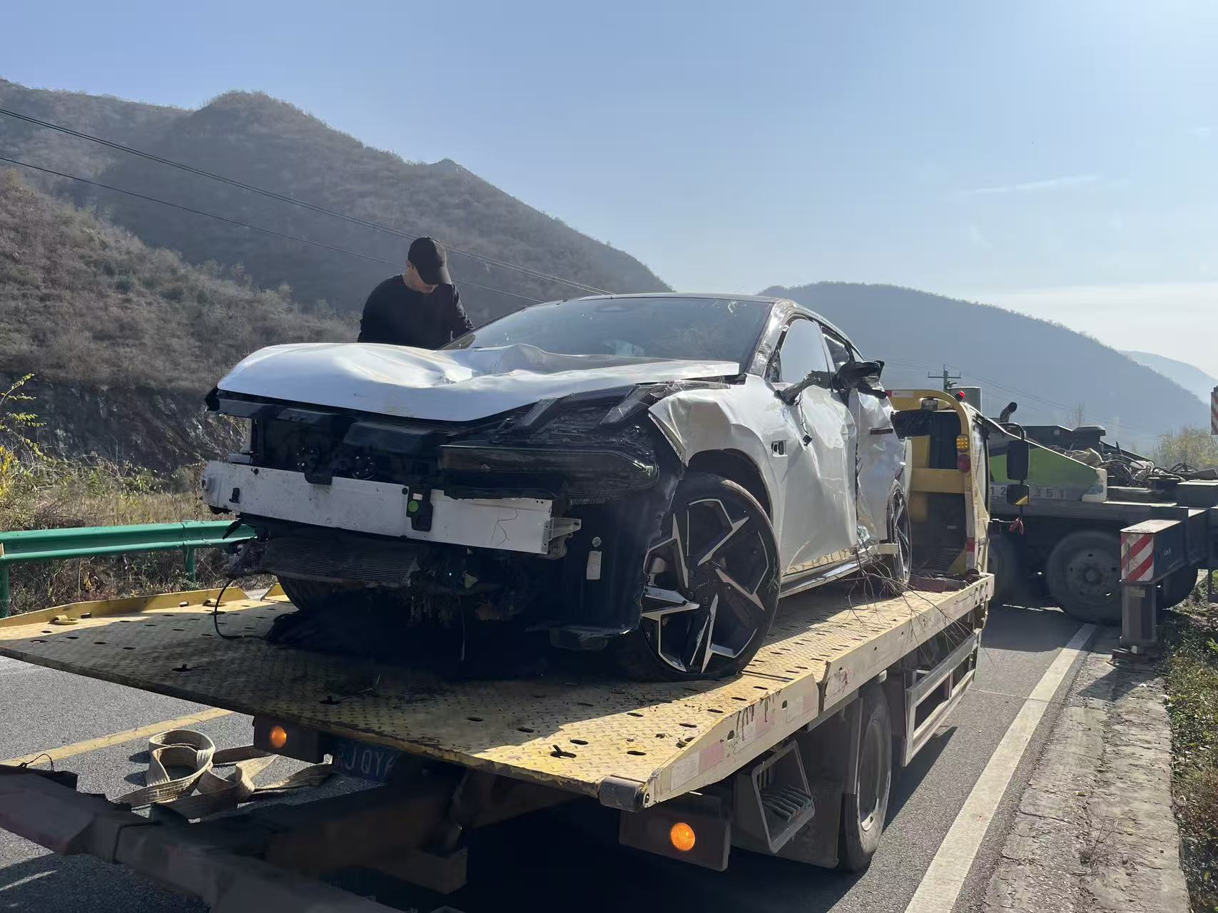 据车主孙先生描述,11月12日晚十点多,他驾驶领克07 EM-P行驶至易县易水湖景区附近的龙溪公路。该路段无路灯照明,即便开启远光灯,视野仍受地形遮挡,行至一处S形弯道时未能提前发现下一个弯道,车辆从护栏排水缺口冲出路面,在坡道上连续翻滚多次后撞上排水口两侧的石头。