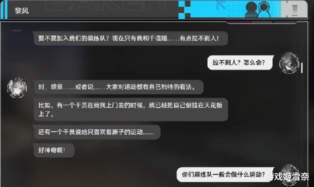 看看咱们黎风小朋友,薛定谔的高情商这块,找管理员晨练,说只有自己跟小陈,其他人都不来,问上一嘴,孩子傻但孩子有劲,先跑十公里,再来五十组变速跑当热身,你这一个晨练的意思是从早上六点练到中午十二点吗?让埃特拉来当场得飞升了,然后咕咕嘎嘎委婉的表示俩神人,黎风直接就是一个谢谢管理员夸奖,啊我什么时候夸你了?