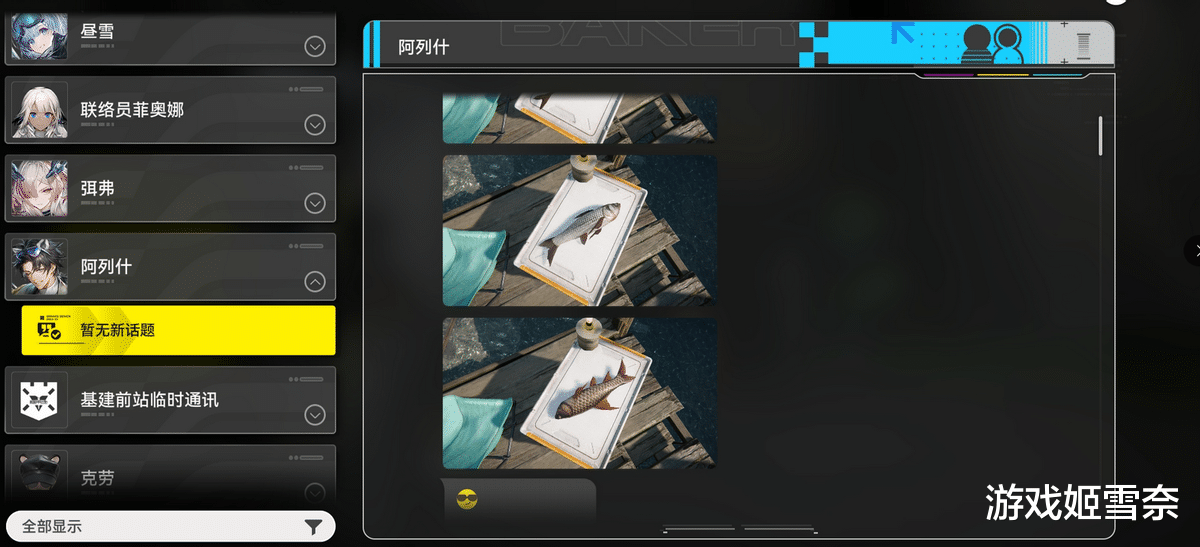 我有点被鹰角整无语了。胖企鹅闲暇时打开手机看看消息,一看阿列什发了一串图片,点开被大鱼塞满了屏幕,不是哥们,还有赛博钓鱼佬迷路迷到企鹅面前的是吧?