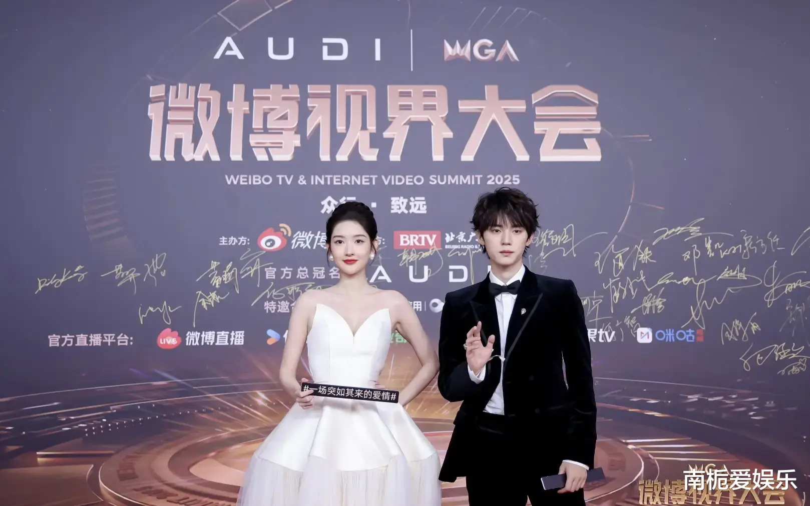 红毯之上,王玉雯的优雅并未因舆论分心。即便在行走时意外踩到裙摆踉跄了一下,她也迅速稳住身形,笑着自嘲:“人也高,鞋也高,地面与我结仇。”一句妙语化解尴尬,圈粉无数。她与周翊然以黑白配造型携手出场,两人身高差恰到好处,气场默契十足,被网友盛赞“古早豪门既视感”,更有剧粉高呼:“这CP感不拍部剧简直浪费!”舞蹈生出身的她体态挺拔,肩颈线条如天鹅般优雅,哪怕穿着设计简约的白裙,也能靠气质撑起全场氛围,被赞“真正的氛围感美人”。