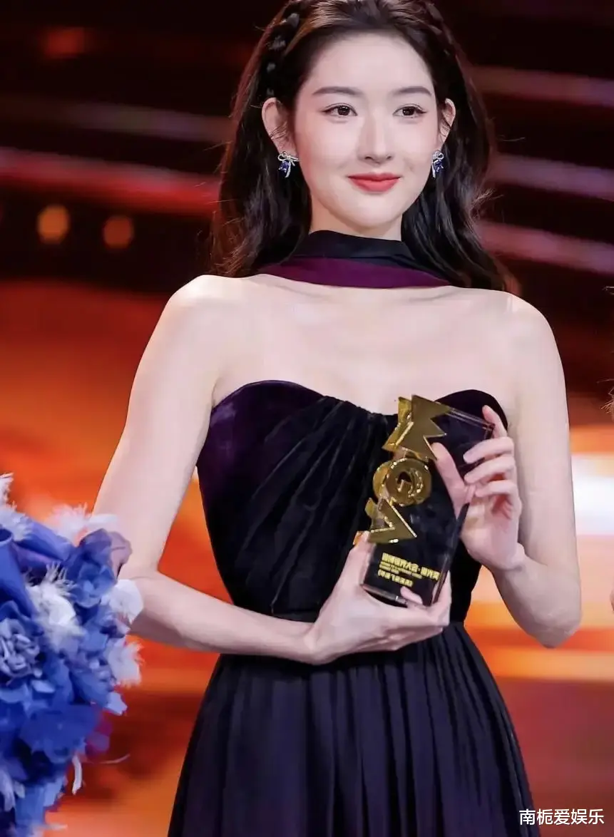 内场换上Ester Abner紫黑渐变高定长裙,披肩卷发搭配复古红唇,瞬间从“花园公主”转型为气场全开的“暗夜女王”。色彩由浅入深,与先前的清纯形象形成强烈反差,让人不禁感叹她的可塑性之强。这一夜,她不仅赢了造型,更赢了话题度,红毯生图与精修图双双出圈,白色纱裙被网友称为“刘亦菲满天星的极简升级版”,她的自信与松弛感,更成为当下审美回归自然的真实写照。