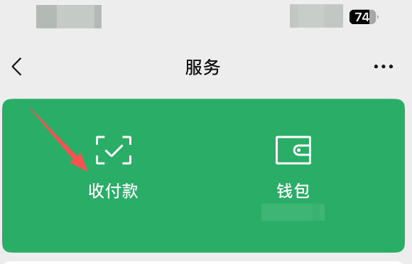 然后点击收付款。注意,有很多时候我们都是点击的钱包,这里我们要需要点击收付款;