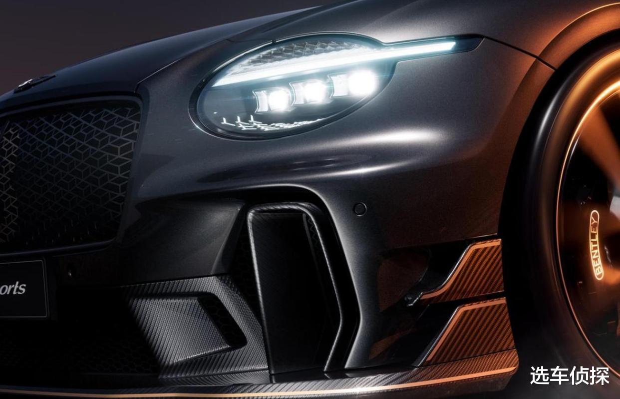 在前保险杠的两侧,可以看到双层碳纤维导流翼,可以让车头的抓地力更足,减少轮拱周围的乱流与高压堆积,这些技术通常出现在GT3 赛车上。在前轮后部,可以看到翼子板上有一个“B”形导流口,用于排出轮拱内压力,减少高速鼓风效应,高性能汽车常见的问题是高速行驶前轮拱压力过大,导致车头抬起,影响转向,宾利通过新的空动设计来避免。