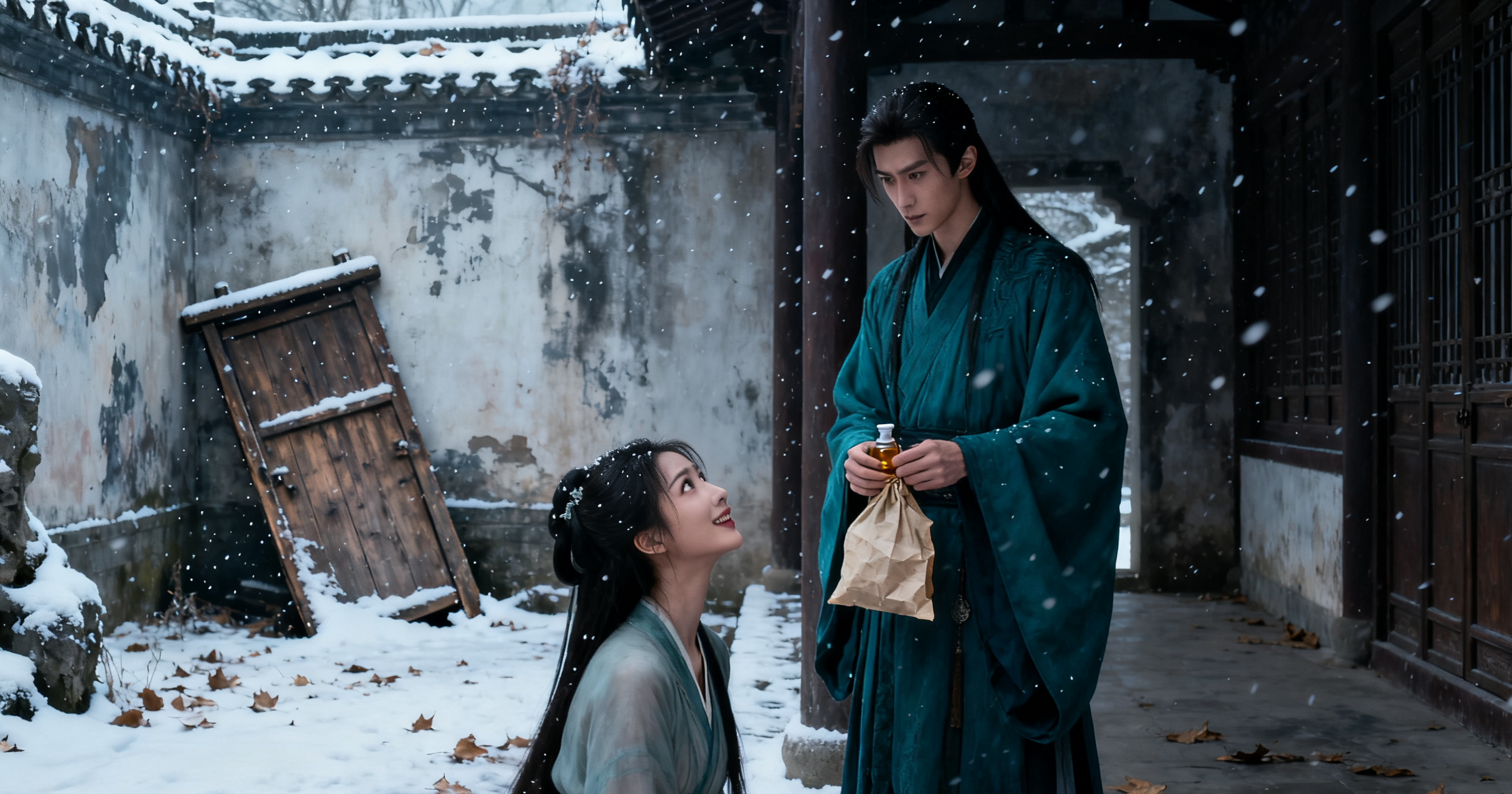 质子宫破败不堪,容渊穿着洗得发白的青袍,在廊下静静看书,睫毛上凝着雪花,眼神冷得像寒潭。