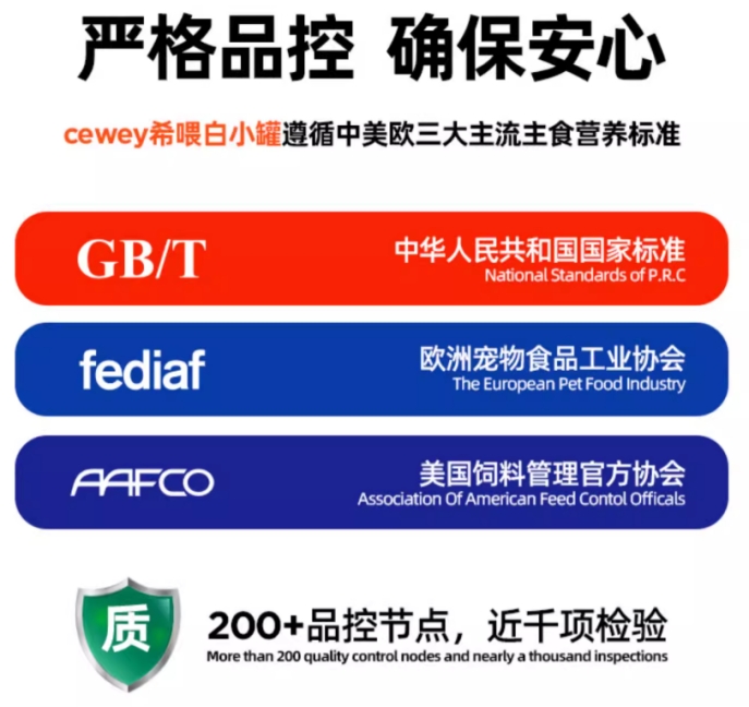 原料够优质,但生产环节也不能掉以轻心,品控稳定,产品的原料优势才能更好地发挥出来。希喂背靠的是国内宠物食品顶级代工厂山东汉欧,生产罐头的车间是和生产婴儿奶粉的一个级别,卫生条件绝对优秀。它还吸取国外大牌企业的经验,形成了自己的5A级品控体系,从原料进厂到出厂,每个环节都经历层层质检,超200个品控节点让铲屎官拿到手的每一罐罐头都靠谱。