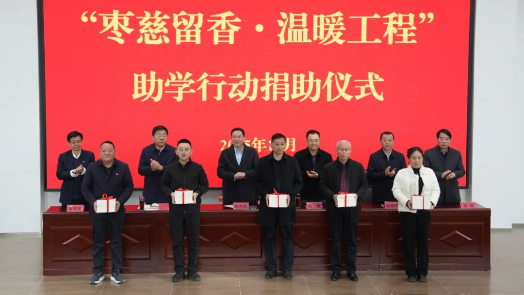 12月10日,2025年“枣慈留香·温暖工程”助学行动捐助仪式在枣庄应用技术职业学院举行。市政府副市长、市中华职教社主任刘吉忠,市慈善总会会长、市民政局原二级巡视员张峰,市委统战部分管日常工作的副部长王虎,市中区委副书记、区长韩耀辉,枣庄应用技术职业学院校长黄国华,市光彩事业促进会副会长、东方光源集团有限公司董事长张坤出席活动。各区(市)中华职教社主任、党委统战部分管负责同志,受助院校负责同志、受助学生代表和职教社社员代表参加。