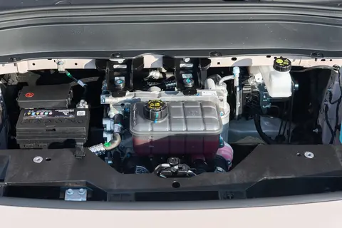 零跑 B10 的车身尺寸为 4515×1885×1655mm,轴距达到 2735mm,在紧凑型 SUV 中处于主流偏上水平,尤其是轴距方面的优势较为明显。得益于高达 87.4% 的空间利用率(官方称 “得房率”),车内空间表现出色。实测数据显示,身高 180cm 的乘客坐进前排,头部空间余量超过一拳;后排腿部空间同样宽裕,地板接近纯平,即便是三人并坐也不会感到局促,这样的空间表现对于有孩子的家庭或经常搭载亲友的用户来说颇具吸引力。后备厢常规容积已能满足日常购物或短途旅行的需求,后排座椅支持比例放倒,完全放倒后容积可扩展至 1415 升,无论是搬运婴儿车、自行车,还是小型家具都不成问题。这种灵活的空间组合,让零跑 B10 在实用性上更贴合家庭用户的真实使用场景。
