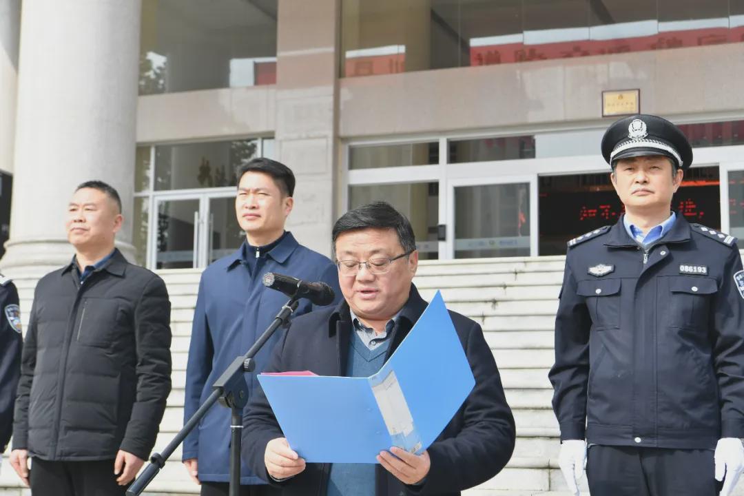县公安局政委雷震代表局党委现场郑重表态:将充分发挥新装备的机动优势,提升街面管控与应急处突效能;强化与城管等部门的联动共治,健全联合执法机制;坚持规范文明执法,以过硬作风展现息县公安良好形象。