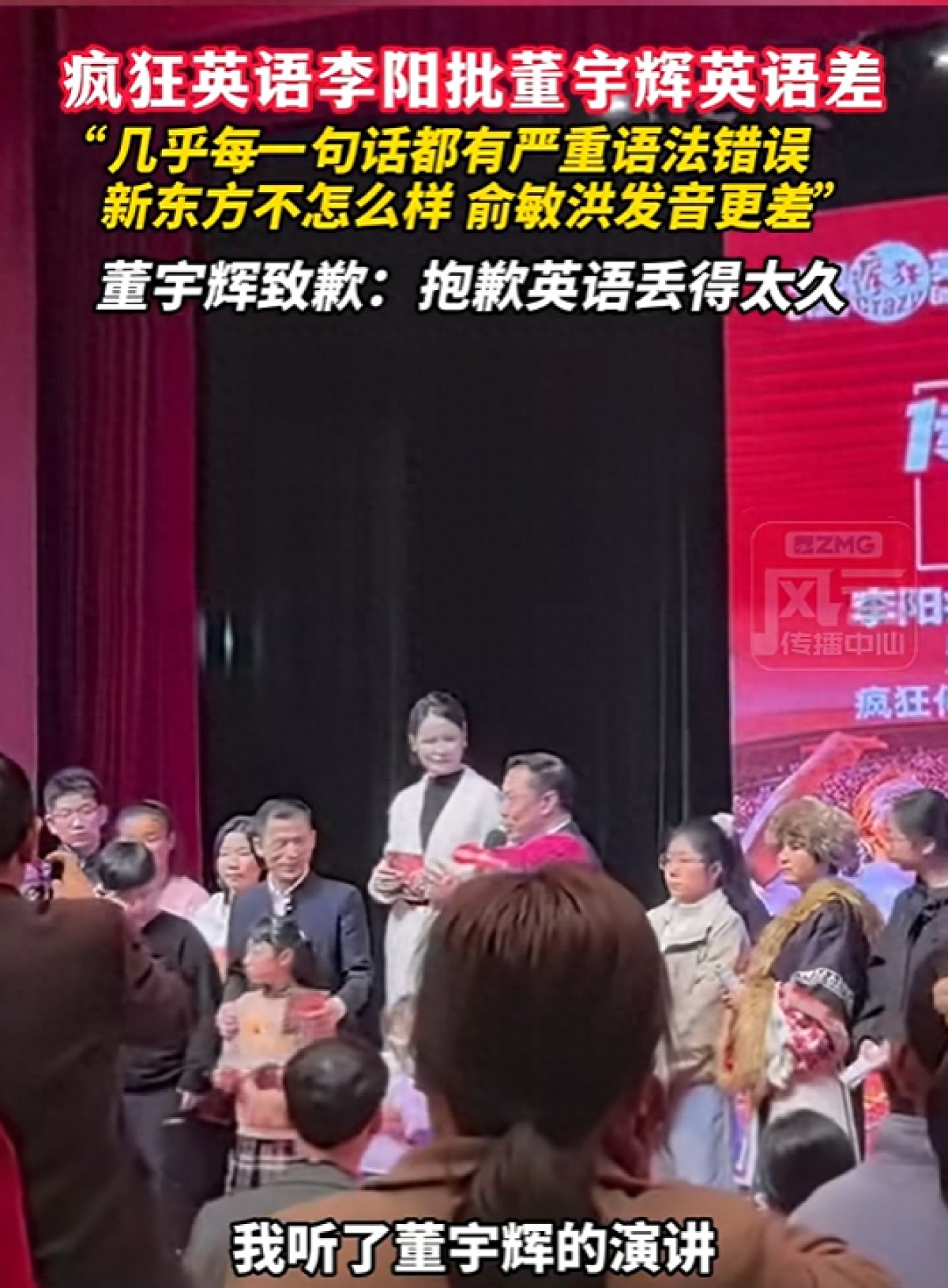 据津云新闻,近日有网友发视频称,在11月8日-9日的疯狂英语线下活动中,疯狂英语创始人李阳表示,“昨天我听了董宇辉的演讲,跟国外的外交官交流,几乎每一句话都有严重的语法错误,而且发音特别怪,所以证明新东方不怎么样,俞敏洪发音更差,所以学口语唯有疯狂英语。这段话一定要发到网上,引起洪天巨浪,轩然大波,我就喜欢轩然大波。”