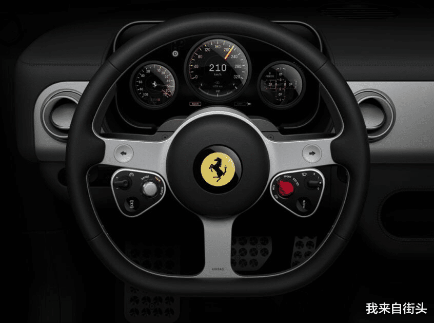 在用料方面,法拉利优先考虑耐用性与触感表现,大量使用铝合金等材料,并强调清晰度与操作反馈。方向盘造型灵感来自1950至1960年代经典Nardi三辐木质方向盘,三辐结构采用回收铝材并刻意外露,据称比现款的法拉利方向盘减轻约400g。