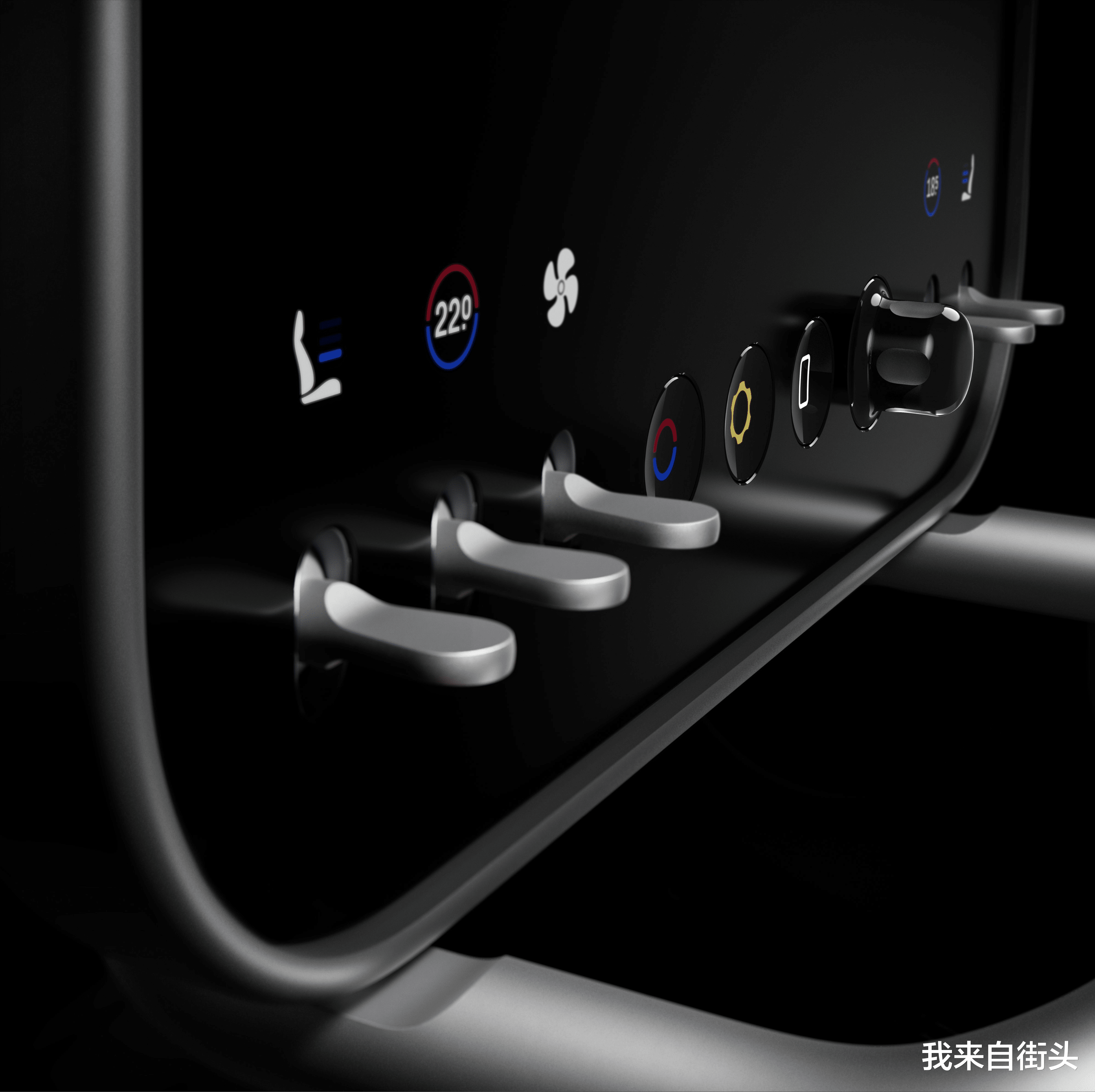 回到正题,从此次发布的官图来看,Luce的内饰座舱设计走的是极简路线,但不同于当前许多电动车依赖大尺寸触控屏的思路,新车保留了大量实体机械控制装置,整体呈现出一种科技加现代工业风又带复古味的氛围。