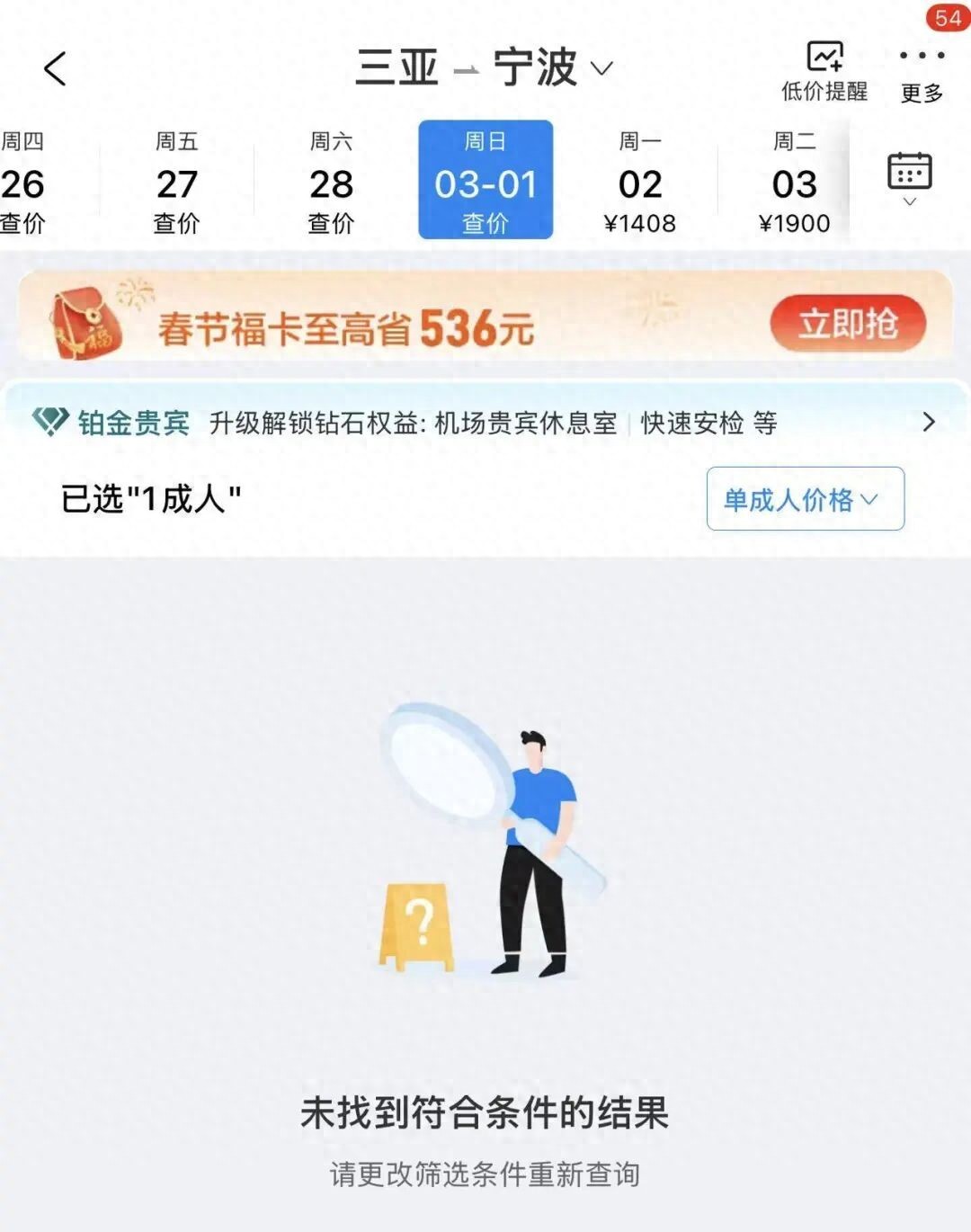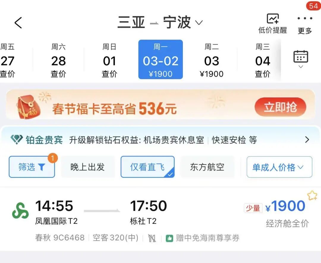 3月1日前三亚直飞宁波的机票已全部售罄