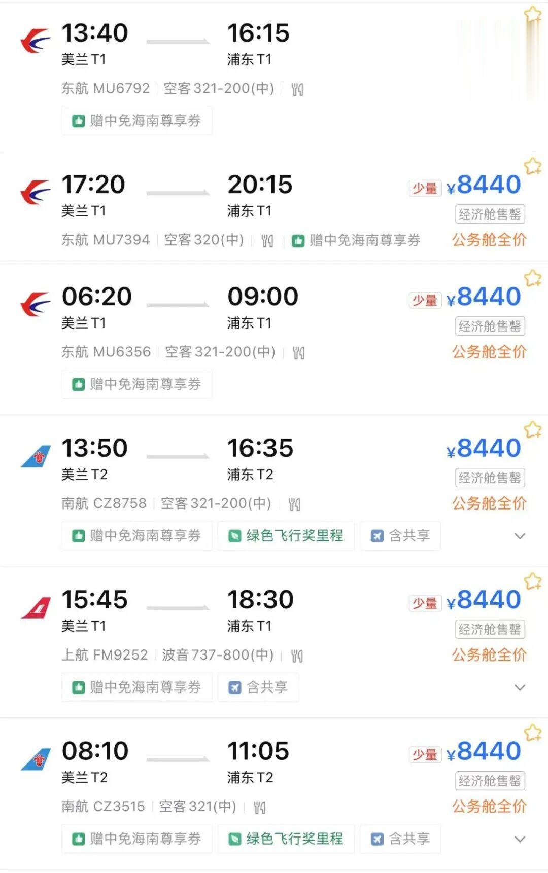 经济舱已全部售罄,只剩公务舱