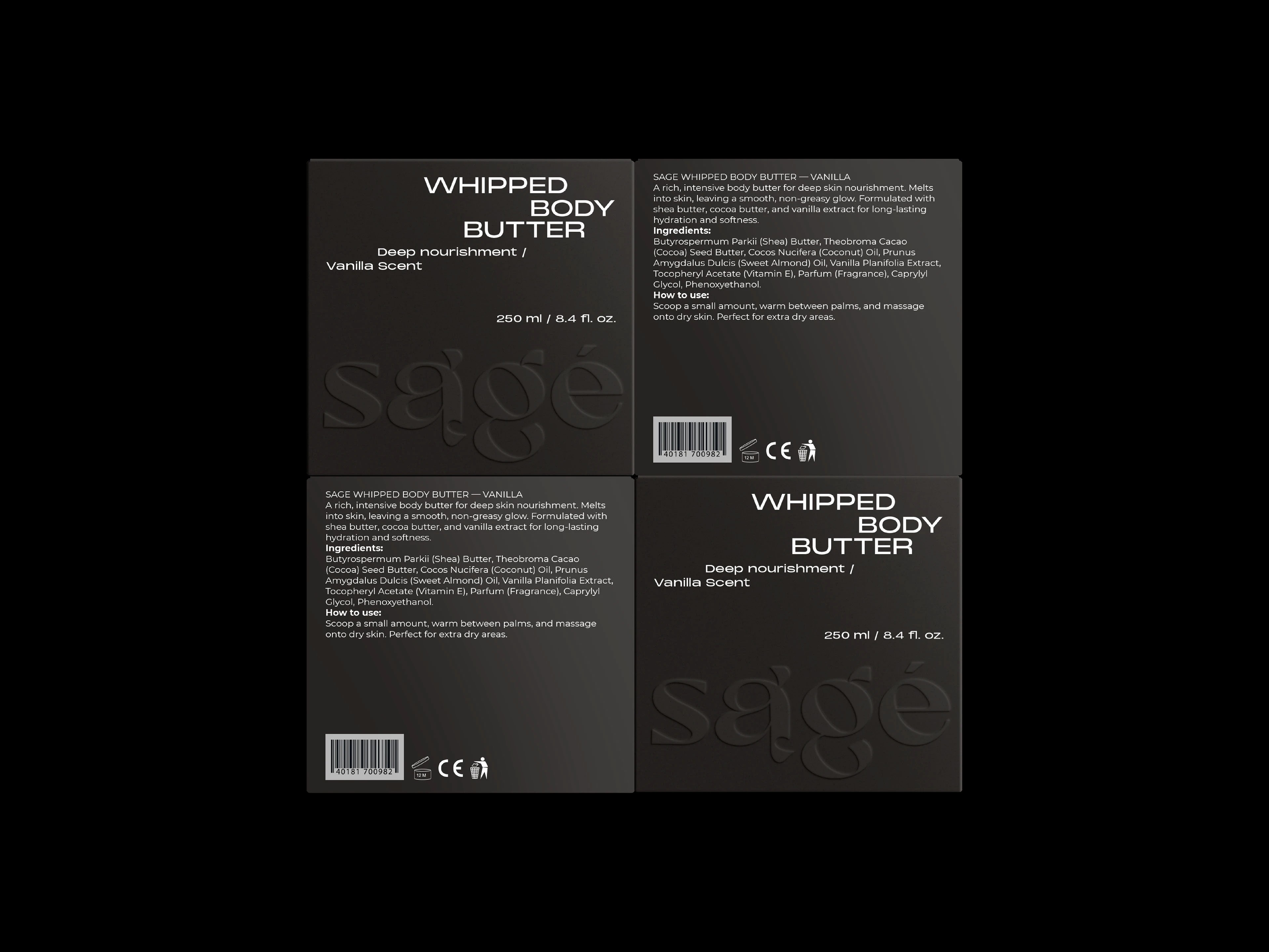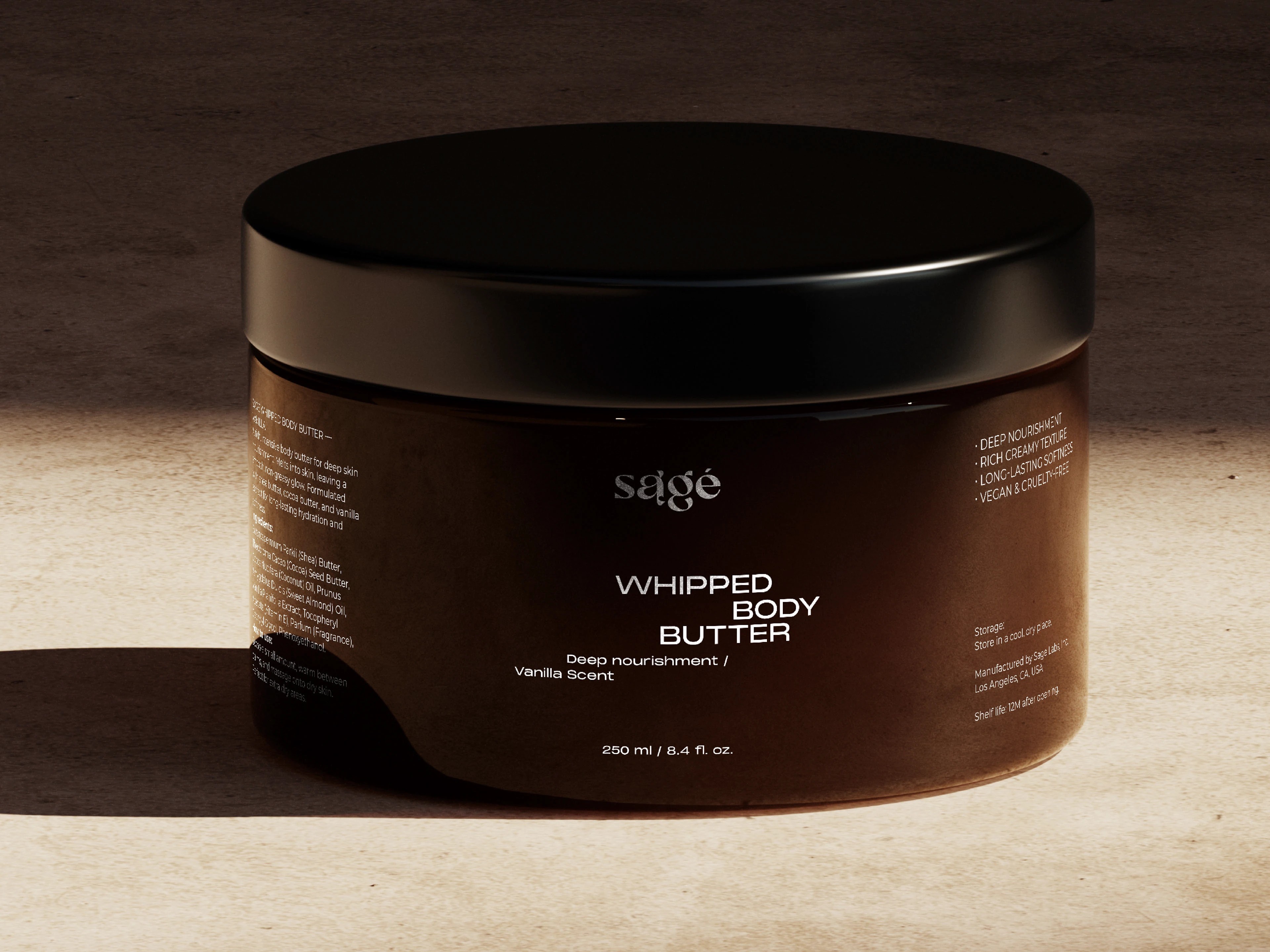 sage的包装设计则走的是低调奢华路线。深棕色的瓶身搭配黑色的按压泵头和瓶盖,整体造型简约大方。瓶身上的白色字体清晰明了,“sage”字样简洁而富有质感。包装上没有过多的装饰,却通过材质的选择和色彩的搭配,传递出一种内敛的高端感。尤其是当光线洒在瓶身上时,深棕色所折射出的光泽,仿佛在诉说着天然与纯粹。这种设计风格就像一位优雅的绅士或淑女,不张扬却自带光芒,让人感受到一种沉稳而可靠的气质。