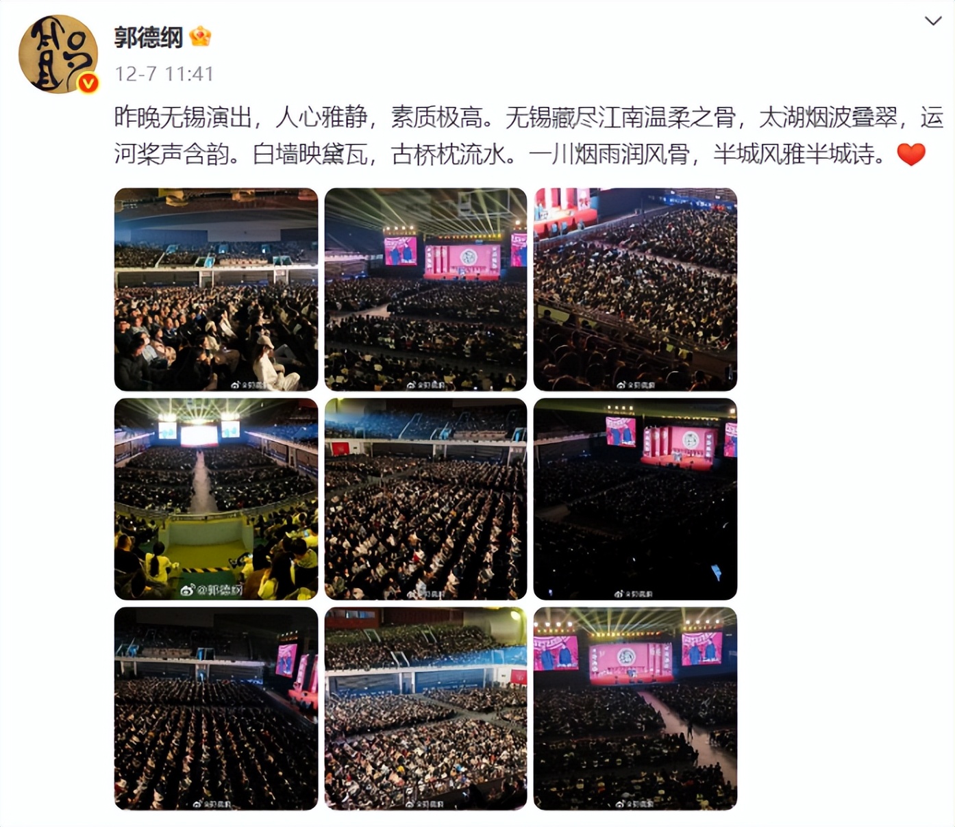 昨晚无锡演出,人心雅静,素质极高。
