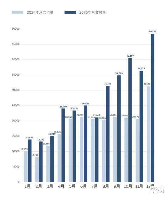 销量的增长,确实是最直接的原因,分析蔚来2025年的销量数据就能更清晰地看到蔚来盈利改善的轨迹。蔚来2025年全年累计交付32.6万辆,同比增长了46.9%。具体到季度销量,蔚来四个季度销量分别是4.21万辆、7.21万辆、8.71万辆、12.48万辆,明显呈现出持续增长的特征。