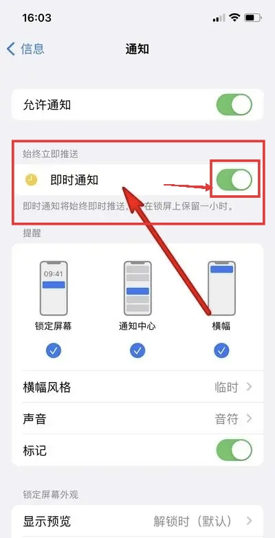 3.进入到通知页面后,点击打开【即时通知】右侧按钮即可了。