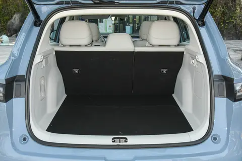 门把手是隐藏式的,按一下会自动弹出来,不仅好看,还能降低风阻。官方给的风阻系数是 0.265,对于一台紧凑型 SUV 来说,这个数据挺不错的,毕竟风阻小了,续航也能更实在些。轮毂是 18 英寸的,轮胎规格有点特别,前轮是 225/50 R18,后轮是 235/50 R18,后来查了下,这种前后胎宽度不一样的设计,主要是为了兼顾操控和稳定性,日常开的时候能明显感觉到后轮抓地力更足一些。