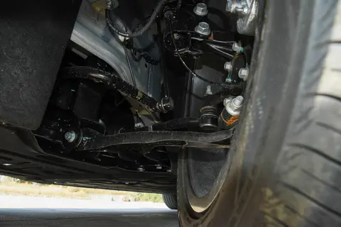 底盘方面,零跑 B10 采用前麦弗逊 + 后多连杆的悬挂组合,调校偏舒适。过减速带或者坑洼路面的时候,悬挂能很好地过滤颠簸,坐在车里不会觉得很颠,尤其是后排乘客,感受更明显。不过快速过弯的时候,侧倾会比较明显,毕竟 SUV 的重心比较高,这点是正常的。转向手感很轻,女生也能轻松驾驭,不过虚位稍微有点大,开高速的时候需要频繁修正方向,这点希望后续能优化一下。