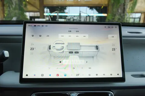 坐进车里,第一感觉是视野开阔。中控台设计得很简约,几乎看不到实体按键,大部分功能都集中在中间的 14.6 英寸屏幕上。我特意看了下屏幕参数,分辨率是 2560x1440,也就是常说的 2.5K,显示效果很细腻,连图标上的小细节都能看清,而且操作起来很流畅,点屏幕、滑动菜单都没有卡顿的情况。后来问了工作人员才知道,车机用的是高通芯片,低配版是 8155,高配版是 8295,这两种芯片在车载系统里都属于比较靠谱的,日常用个三五年应该不会落后。