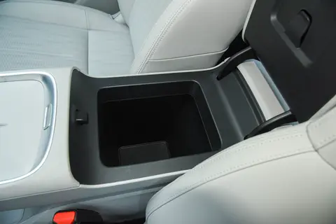 储物空间设计得很贴心。门板上的储物槽很深,能放下两瓶大瓶装的矿泉水,还能塞个雨伞;中控台下方有个镂空的区域,放手机很方便,而且里面有无线充电板,功率是 15W,大概一个小时能把手机从 30% 充到 80%;扶手箱的容积也不小,能装下好几包纸巾和一个车载吸尘器;手套箱更夸张,我试过放一个 14 寸的笔记本电脑,居然能轻松塞进去,平时放些文件、杂物完全没问题。