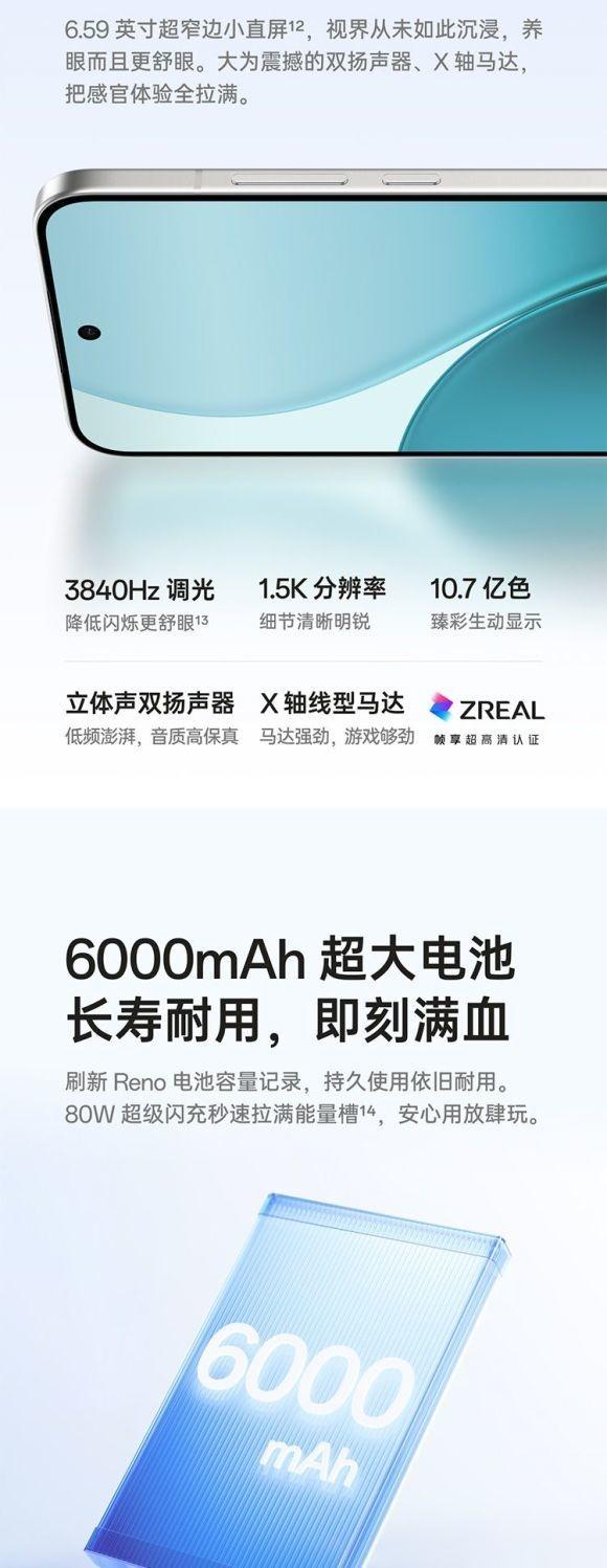 电池比Reno14标准版小一点,5630毫安,但是支持50瓦无线充!所以综合体验更均衡
