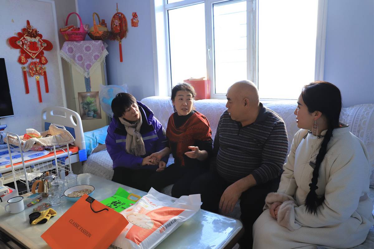 考虑到部分群众行动不便,红星还与社区工作人员一同上门慰问,将关怀送至家中。居民邢国芹因半身不遂行动困难,老伴听力欠佳,老两口日常生活颇为不易。一进门,大家便围坐在邢国芹身边嘘寒问暖,细心询问她的身体近况。面对这份贴心的关怀,邢国芹感动不已,连声道谢,朴实的话语中流淌着温暖。