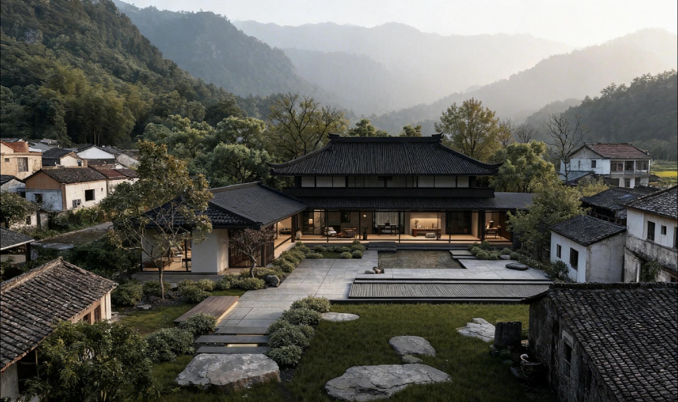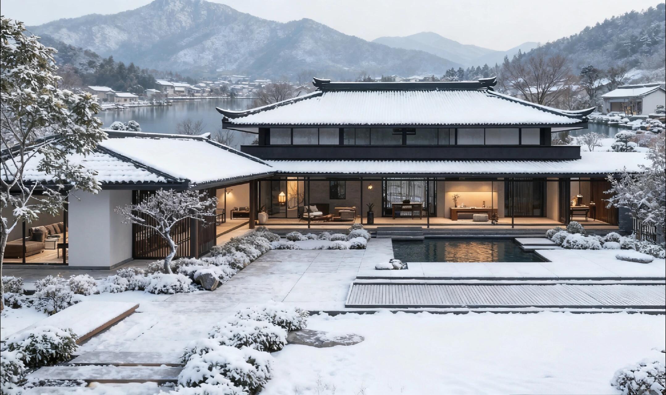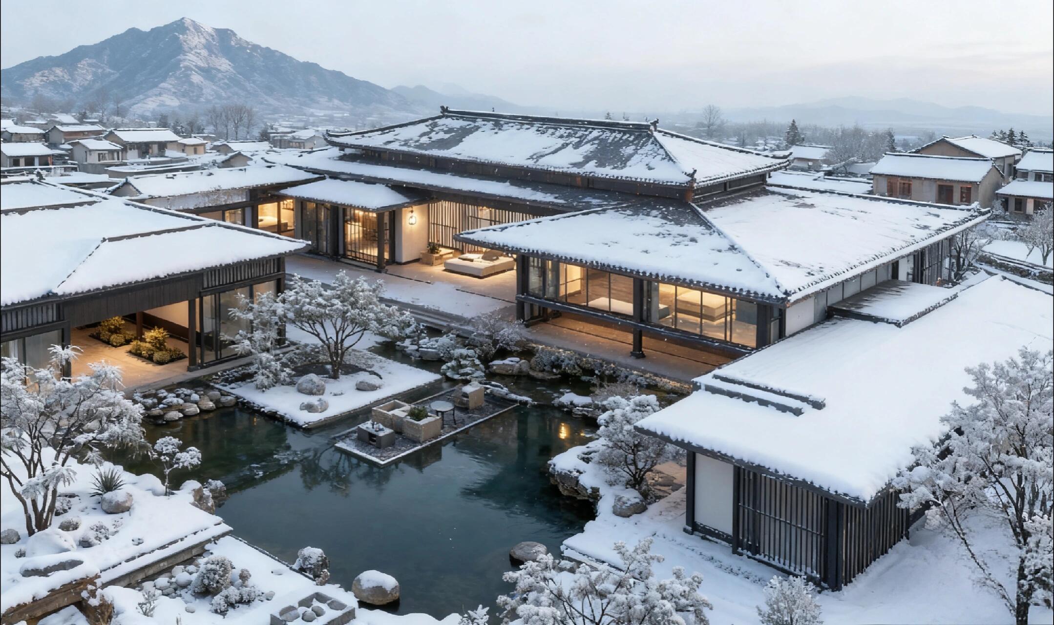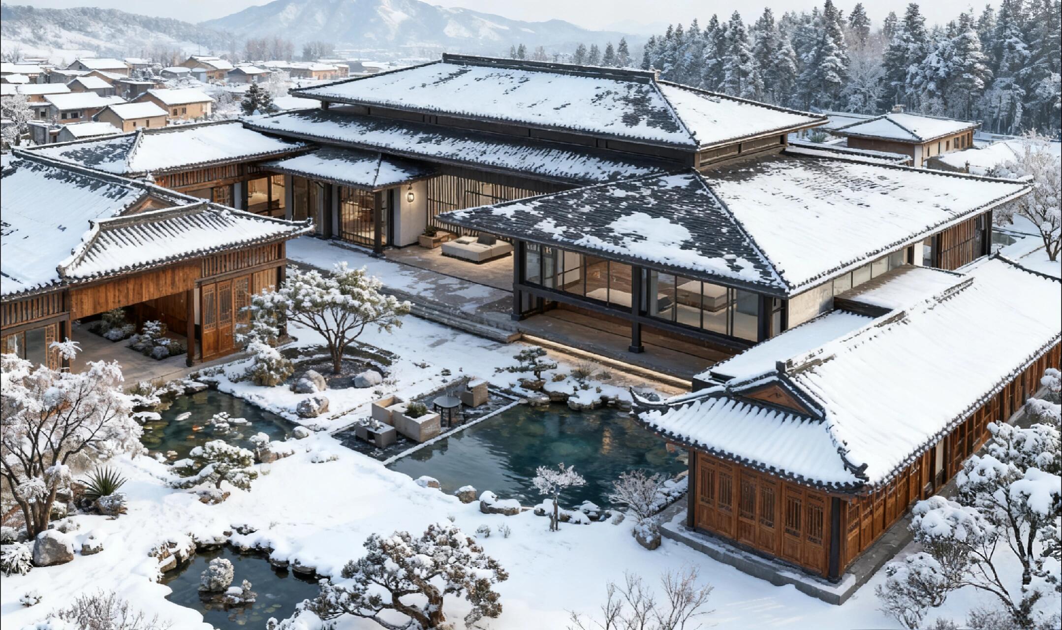 当黑瓦飞檐轻轻落在玻璃幕墙的轮廓之上,当枯山水的留白晕染进江南的秋林,宋式美学的魂魄,正以新中式建筑的形态,在当代山水间悄然生长。
